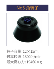 No5 | 角轉(zhuǎn)子 | 12x15ml | 13000r/min | 19460xg |