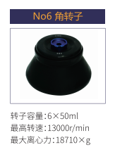 | No6 | 角轉(zhuǎn)子 | 6x50ml | 13000r/min | 18710xg |